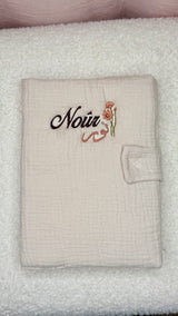 Donnez une touche d’élégance au carnet de santé de bébé avec ce protège carnet en gaze de coton, doux et pratique.